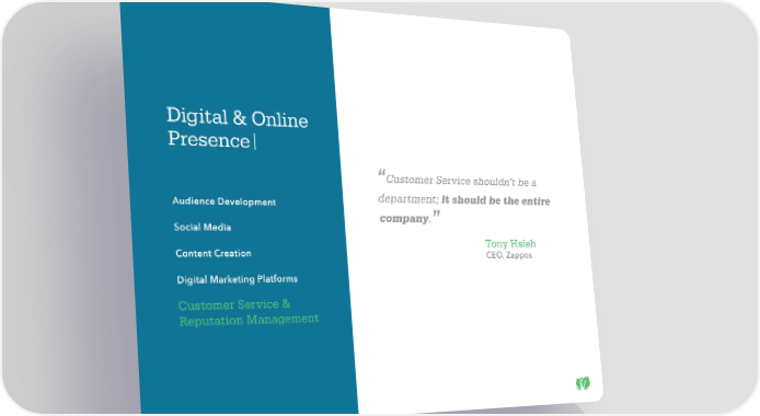 Digital & Online Presence| “Customer Service shouldn’t be a Audience Development department; it should be the entire Social Media company.” Content Creation Tony Hsieh CEO, Zappos Digital Marketing Platforms Customer Service & Reputation Management